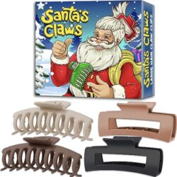 4 Hair Claws - Christmas Stocking Stuffers for Women. Santa's Claws Christmas Gifts Box for Girls, Teenagers, Her, White Elephent Gift Exchange. Large 4.3 Inch Hair Claw Clips (Neutral)